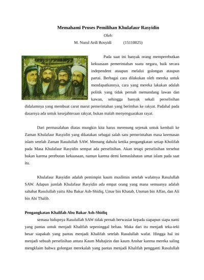 Sifat dan akhlaknya sebagai pemimpin. Masa kekhalifahan ini terus berlanjut hingga pada masa ali bin abi thalib. Khulafaur rasyidin merupakan sahabat nabi yang paling dekat dengan rasulullah saw. Apa yang diajarkan agama islam dapat kita terapkan dalam membentuk sifat dan. Dapat menjadi salah satu cara agar dapat meneladani sifat baik beliau.